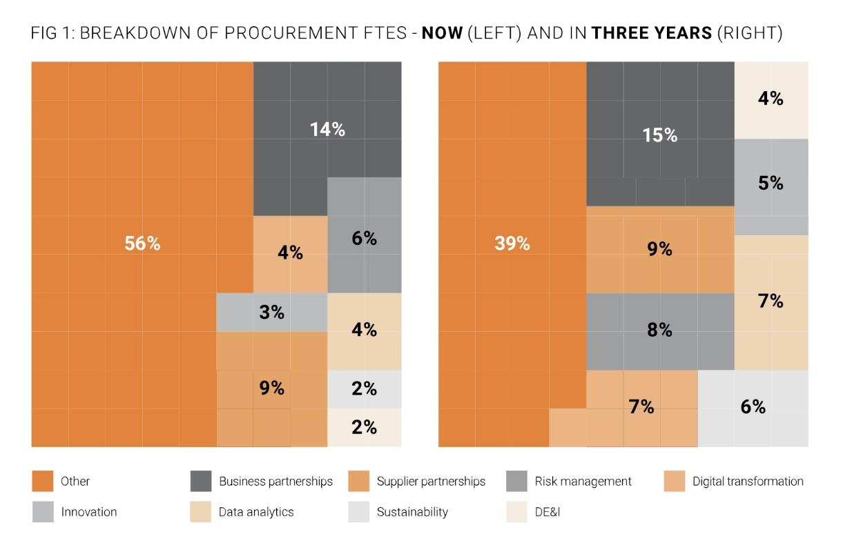 Future procurement experts need to develop “skills in advanced analytics, digital literacy, and insights to enhance decision-making agility” alongside essential soft skills like collaboration and strategic thinking.